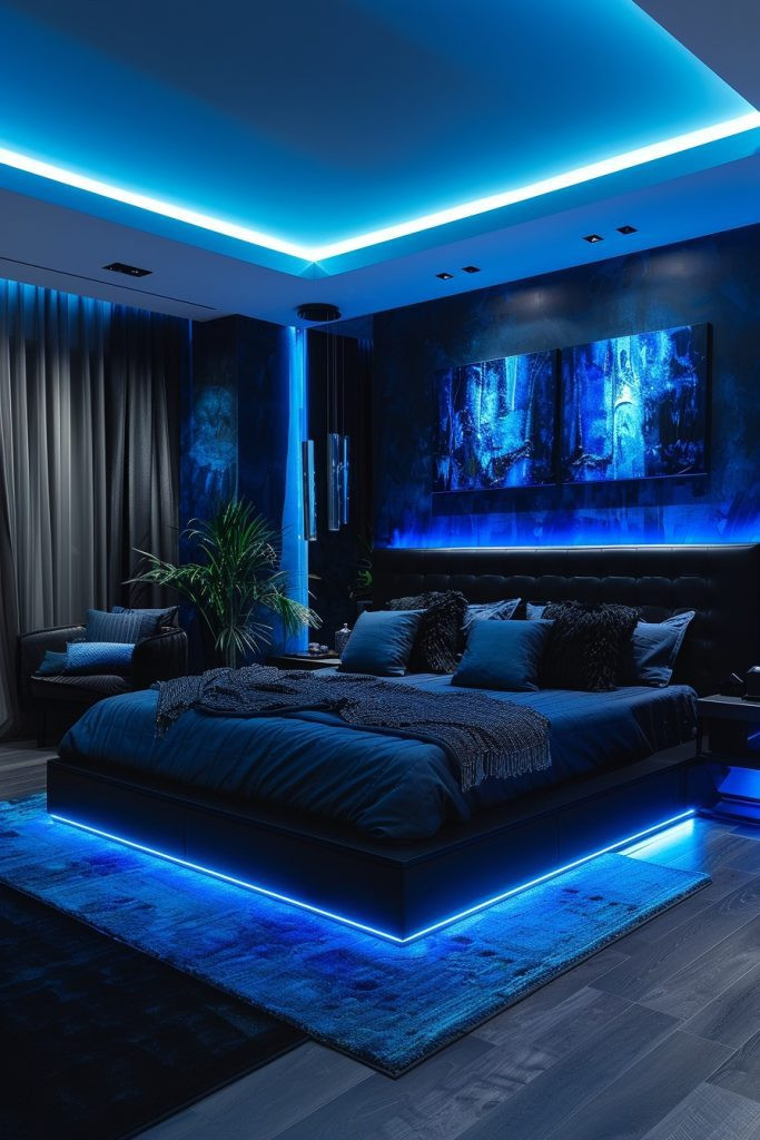 6. Midnight Glam Baddie Bedroom with LED Highlights