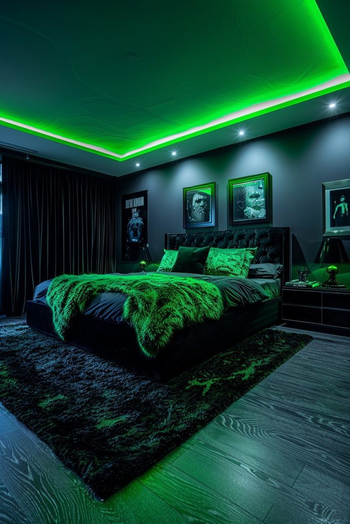11. Edgy Elegance Baddie Bedroom: Sleek and Neon