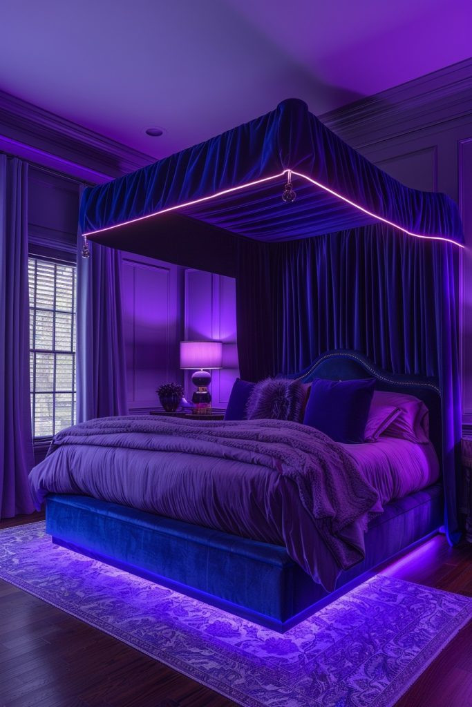 25. Velvet Vibes Baddie Bedroom with Vibrant Lights