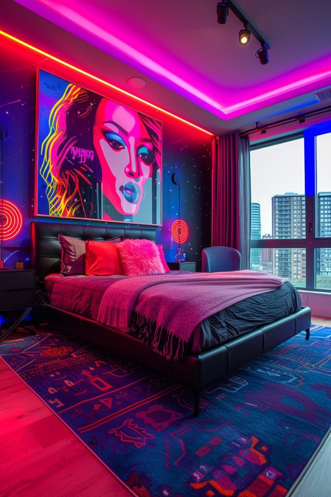 28. Flawlessly Fierce Baddie Bedroom with Flashy Neon