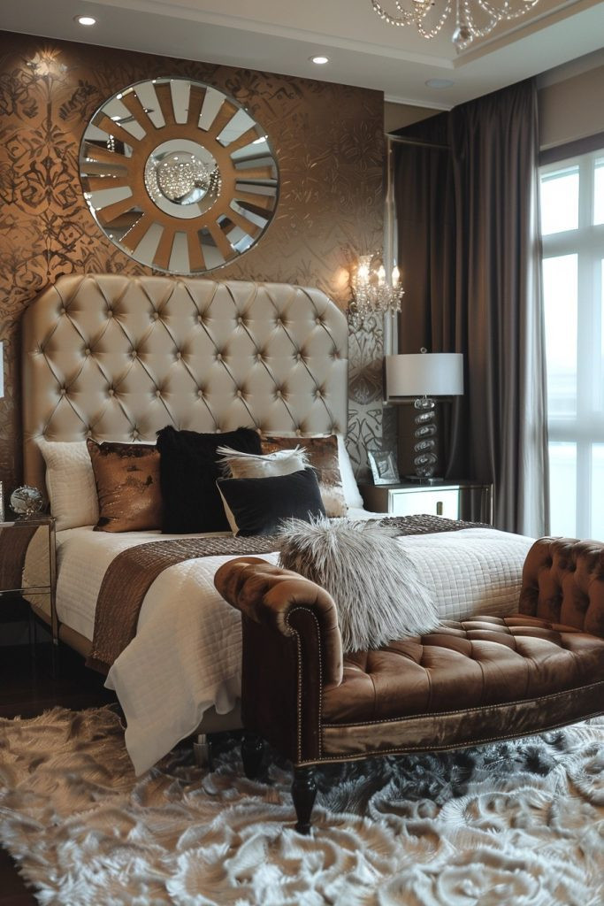 11. Glamorous Gold Accented Bedroom