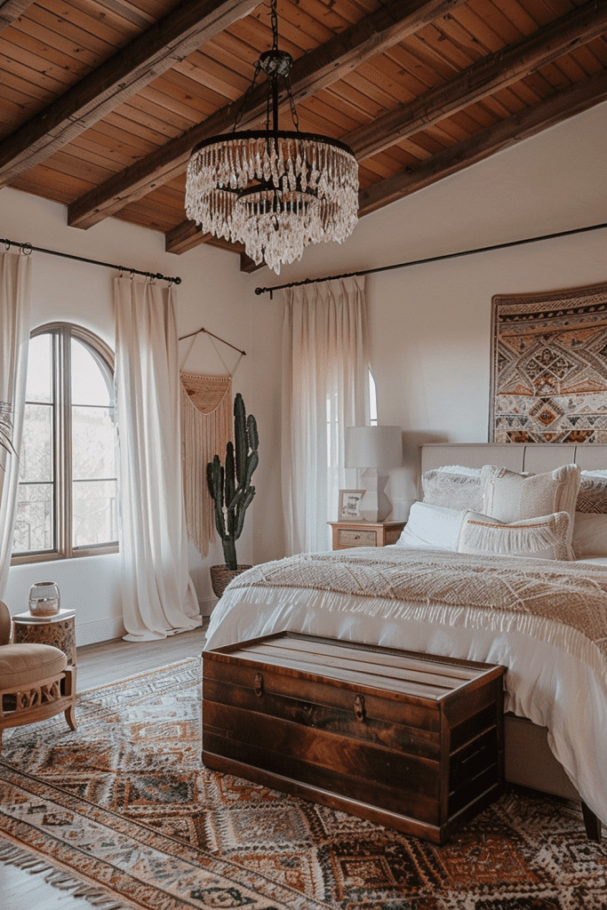 27. Celestial Comfort: Boho Bedroom Sanctuary in Tall Spaces