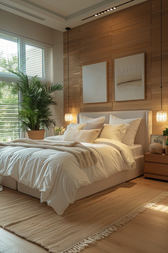 Create a sanctuary grounded in nature with an Earthy Modernist Retreat. This style harmonizes clean, modern lines with organic materials for a look that is both sophisticated and calming. The palette is drawn from the earth itself, featuring warm taupes, deep forest greens, and soft stone grays. Furnishings are minimal yet impactful, with pieces made from light oak, walnut, and woven rattan. Texture is key, so incorporate linen bedding, wool rugs, and unpolished stone accents. Large, unadorned windows welcome natural light, blurring the line between indoors and out and fostering a deep sense of tranquility.