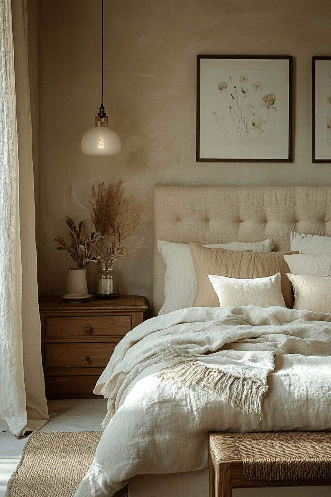 Focus on the natural, breathable beauty of linen by incorporating it throughout your bedroom decor. This soft, durable fabric instantly adds a touch of rustic yet refined comfort. Use linen for your bedding, curtains, and even an upholstered headboard. The color palette should remain light and airy, echoing the natural off-white and beige tones of the fabric itself. Simple, classic furniture pieces complete this timeless and effortlessly chic look.