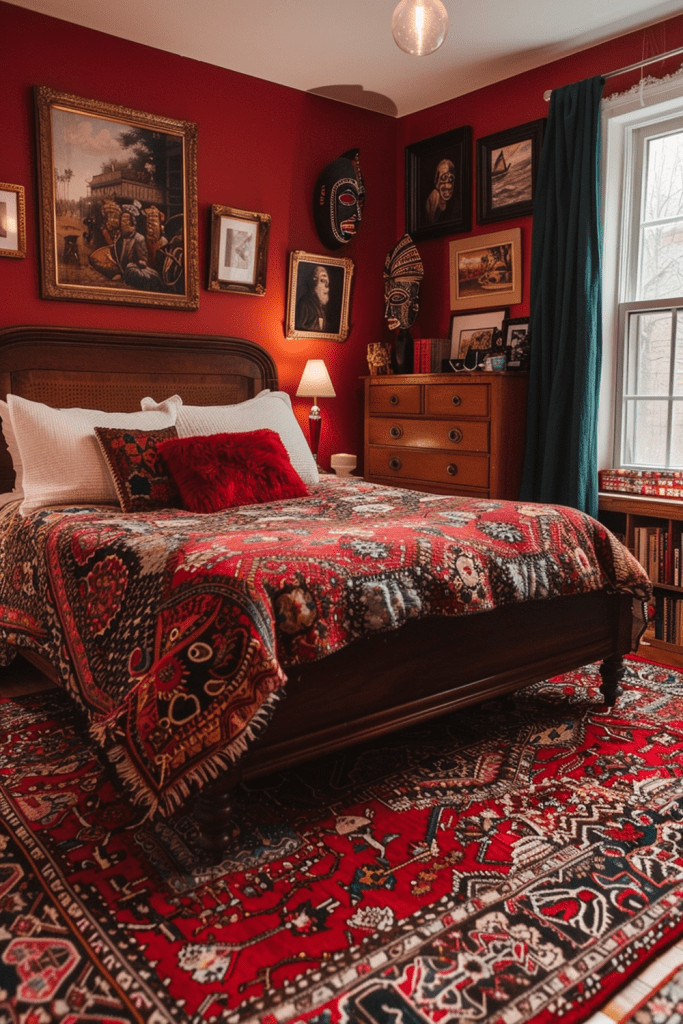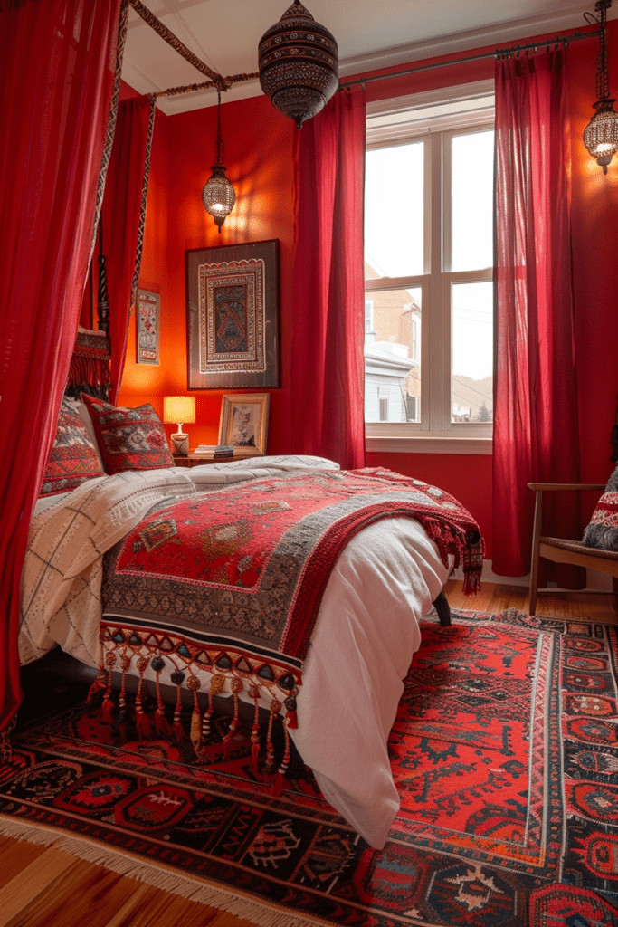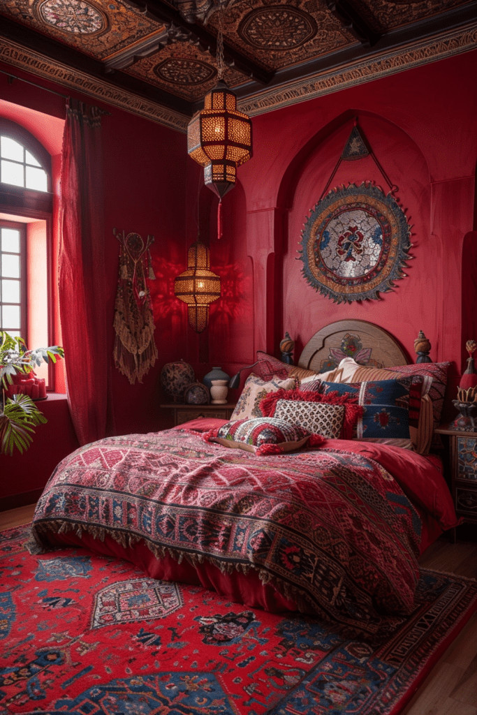 29. Festival of Reds Boho Bedroom