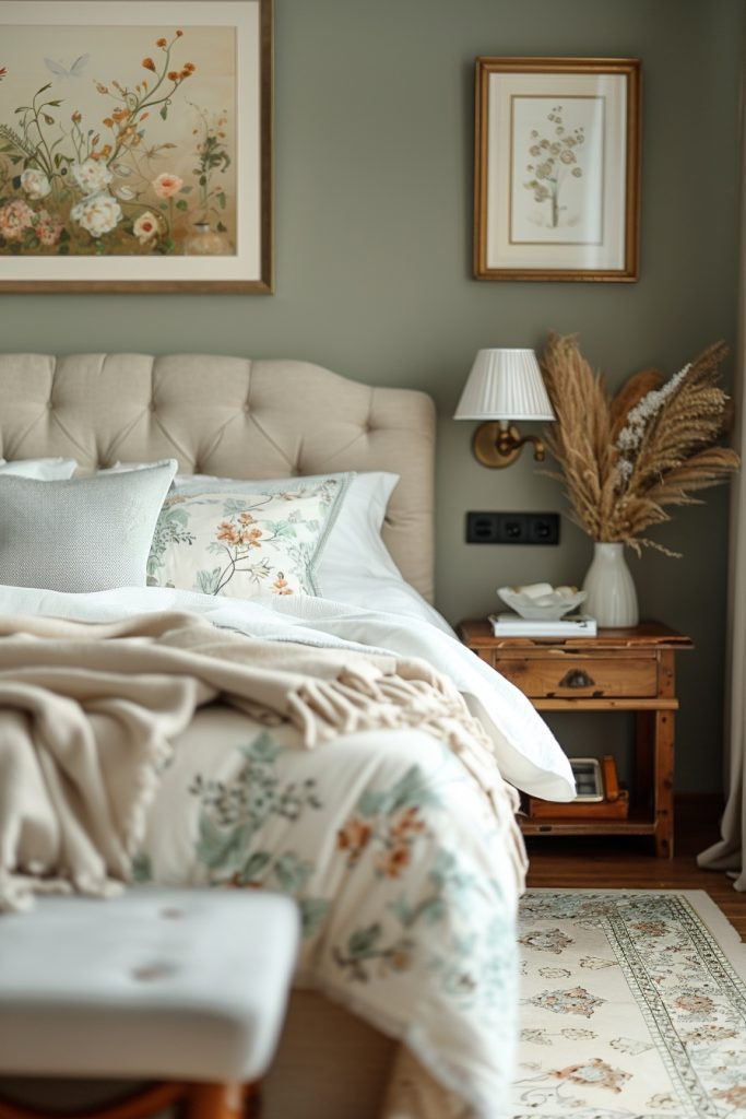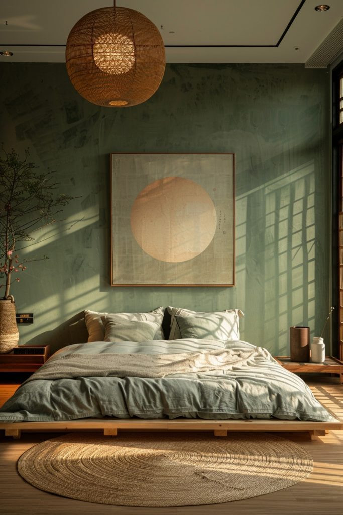 Harness the well-known calming properties of sage green to create an exceptionally serene bedroom setting. This muted, grayish-green is praised for its ability to reduce stress and promote a sense of peace, making it an ideal choice for a space dedicated to rest. To maximize the tranquil vibe, blend sage walls with natural textures like linen bedding, a jute rug, and light wood furniture. Incorporating calming scents through candles or diffusers will further enhance the atmosphere, turning your bedroom into a true haven of serenity.