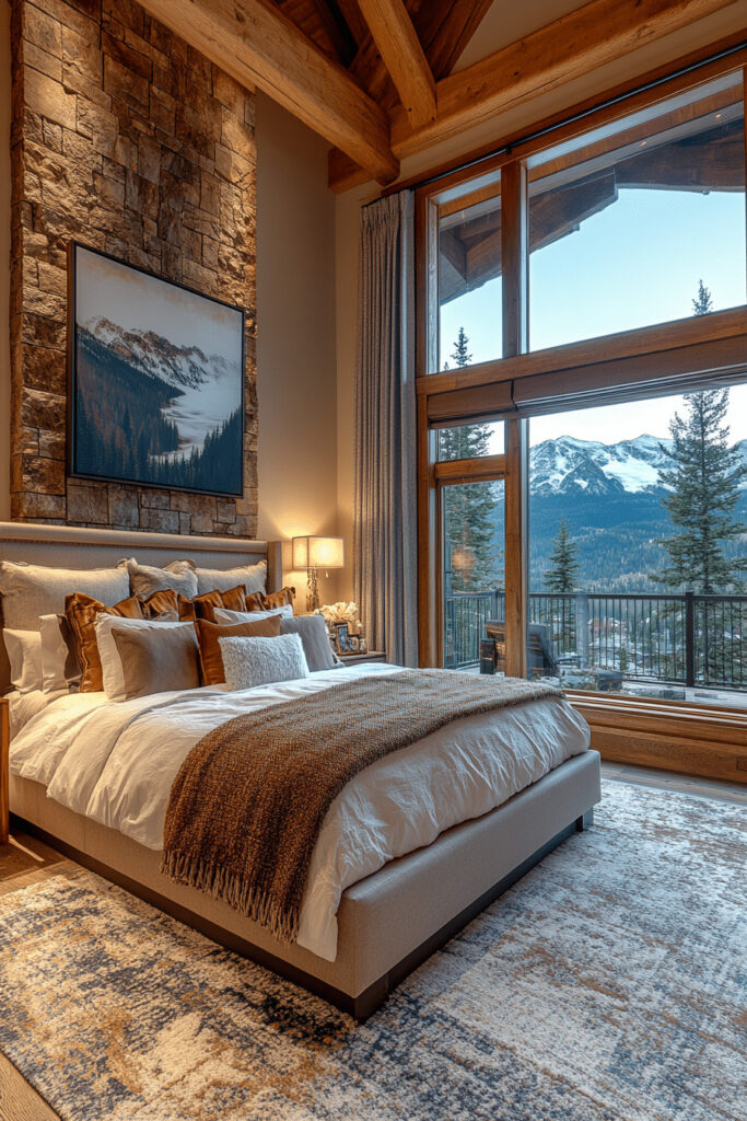 If you are blessed with breathtaking vistas, the Majestic Mountain View Suite is designed to maximize this natural wonder. Floor to ceiling windows showcasing panoramic mountain scenery become the room’s focal point. This dream bedroom inspiration is perfect for nature lovers, featuring rustic design elements and earthy tones that harmonize with the outdoor landscape. The interior aims to bring the rugged beauty of the mountains indoors, using natural wood finishes, stone accents, and a warm, inviting color scheme. Comfortable seating areas strategically placed to enjoy the view allow for ultimate relaxation.