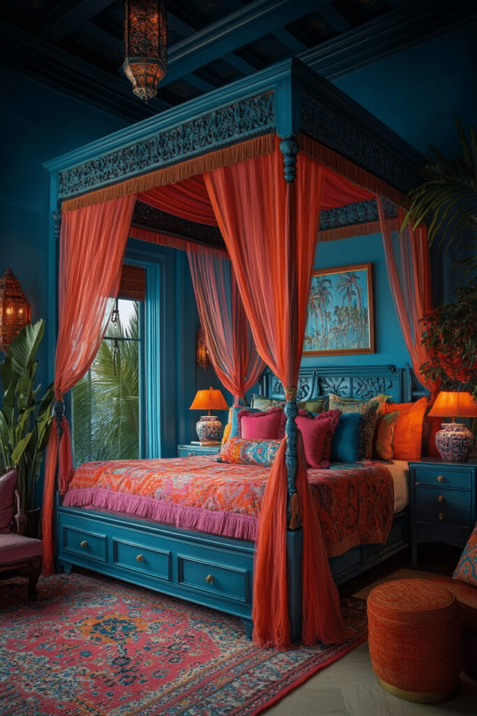 Evoke the exotic allure and breathtaking charm of a secluded tropical destination with a Luxurious Lagoon Retreat. This dream bedroom inspiration comes alive with vibrant jewel toned fabrics like emerald, sapphire, and amethyst, complemented by ornate decorative elements such as carved wood or metallic accents. Imagine opulent silks and velvets mirroring the richness of a hidden island paradise. Soft, ambient lighting and an abundance of large, plush cushions create a deeply comfortable and inviting space, perfect for indulgent relaxation. Consider artwork depicting tranquil lagoon scenes or even a small, discreet water feature to complete the immersive experience.
