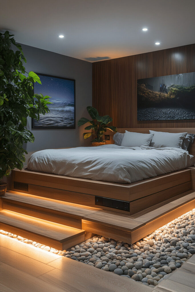 Cater to your inner gadget lover with a High Tech Hideaway, a dream bedroom where cutting edge technology meets comfort and style. Imagine automated systems for lighting, temperature, and blinds, alongside a high end integrated entertainment setup. This space often features sleek, modern furniture with built in tech components, such as wireless charging stations, USB ports, and touch controlled lighting. The room’s design is typically minimalist yet highly functional, emphasizing innovation and efficiency. Smart window treatments that adjust to light and climate control systems ensure personalized comfort at the mere touch of a button.