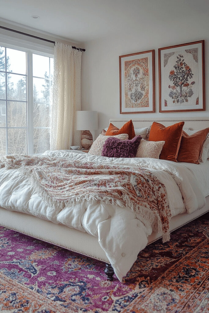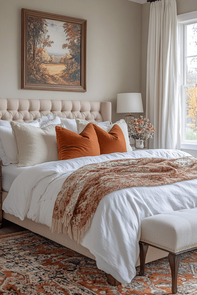 Design a bedroom that feels exceptionally welcoming and warm. This style is perfect for a master suite or a guest room where you want people to feel instantly at home. It uses rich textures, truly comfortable furniture, and warm, layered lighting to create an inviting atmosphere. Decorative accents like plush area rugs, soft draperies, and a comfortable armchair enhance the room’s welcoming feel, making it an ideal space for relaxing in comfort.