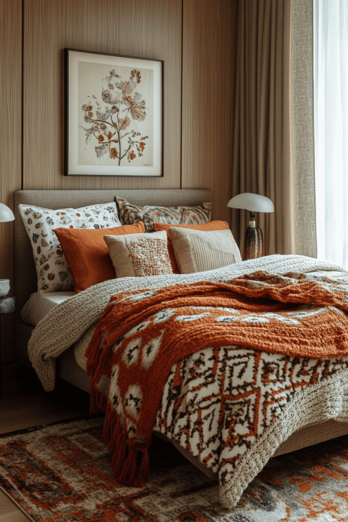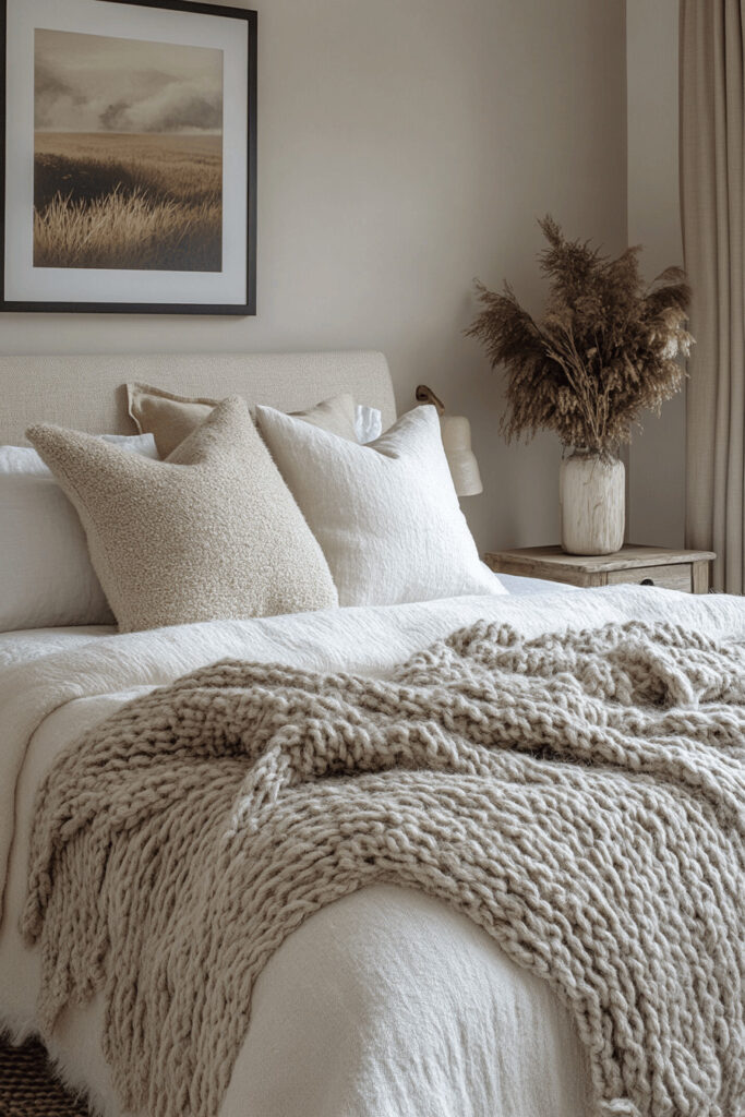 Create the ultimate space for relaxation by designing a cozy nest. This bedroom is all about layering textures to maximize comfort. Think of a bed piled high with handmade quilts, crocheted throws, and an abundance of fluffy pillows. The furniture is plush and inviting, encouraging you to curl up with a good book. Warm, soft lighting and a palette of gentle, comforting hues contribute to a snug and deeply relaxing atmosphere where you can truly unwind.