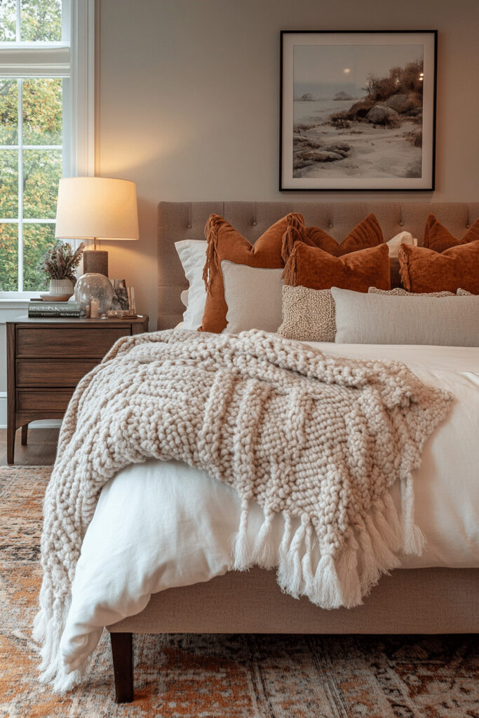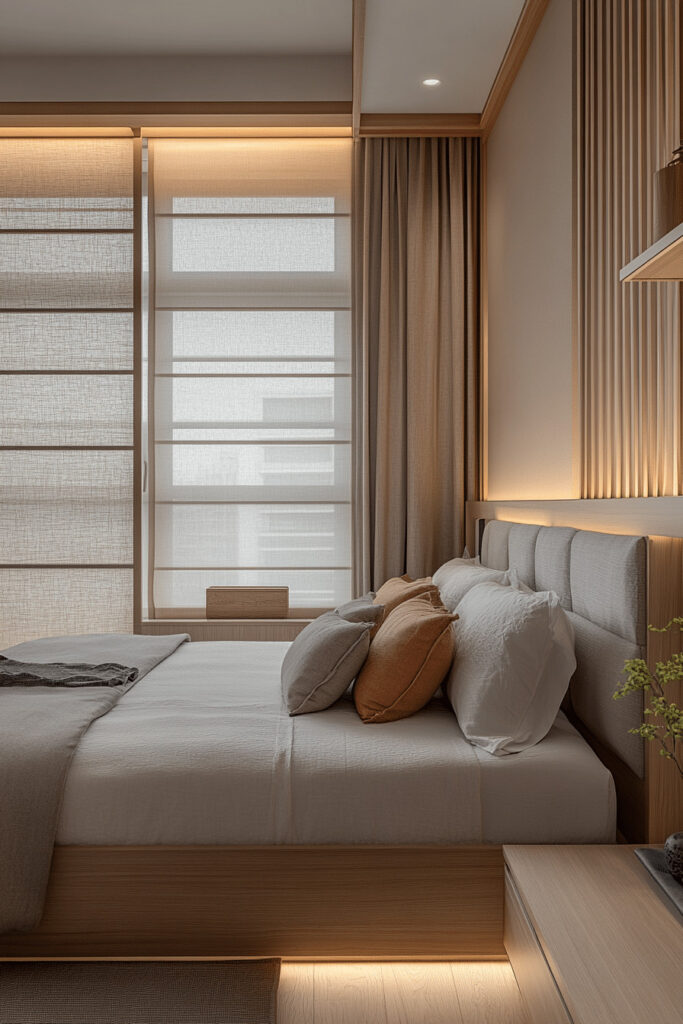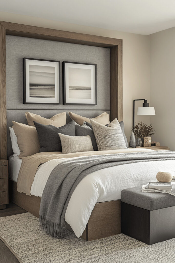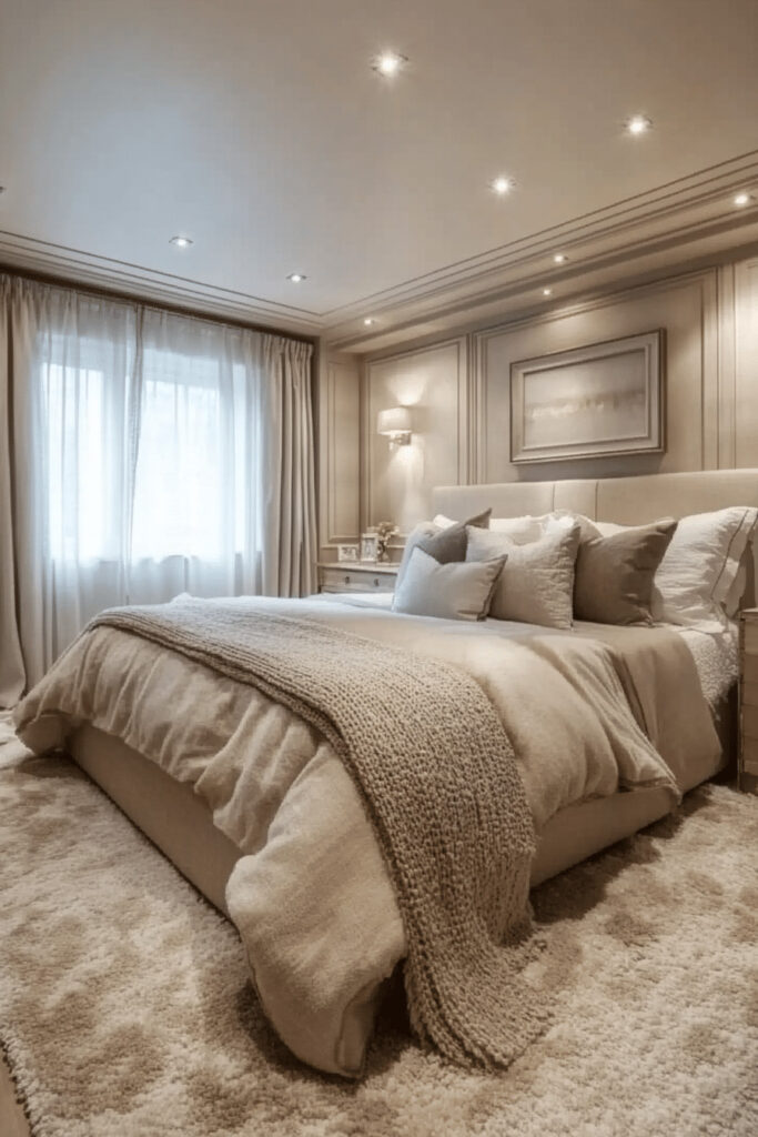This bedroom concept is dedicated to creating the ultimate soft, enveloping, and luxurious retreat. The Cozy Cashmere Cocoon emphasizes profound comfort with authentic cashmere throws, plush down-filled pillows, and high-quality, soft bedding. A palette of warm, neutral tones like oatmeal, dove gray, and biscuit, combined with soft, diffused lighting, makes the space ideal for unwinding after a busy day. It’s a perfect choice for anyone looking to create an incredibly warm, comfortable, and effortlessly chic sleeping area.