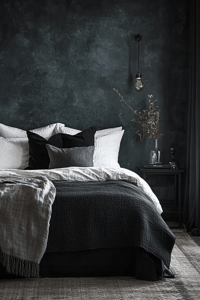 Embrace deep, dark, and saturated colors to create a mysterious, intimate, and cozy atmosphere. An Alluring Moody Tones Room is ideal for the woman who loves a bedroom that feels like a personal, cocooning hideaway. Using moody hues like charcoal gray, deep navy, rich burgundy, or forest green on the walls can be incredibly chic and captivating. Pairing these colors with plush fabrics and soft, warm ambient lighting enhances the allure, making the space uniquely inviting and dramatic.