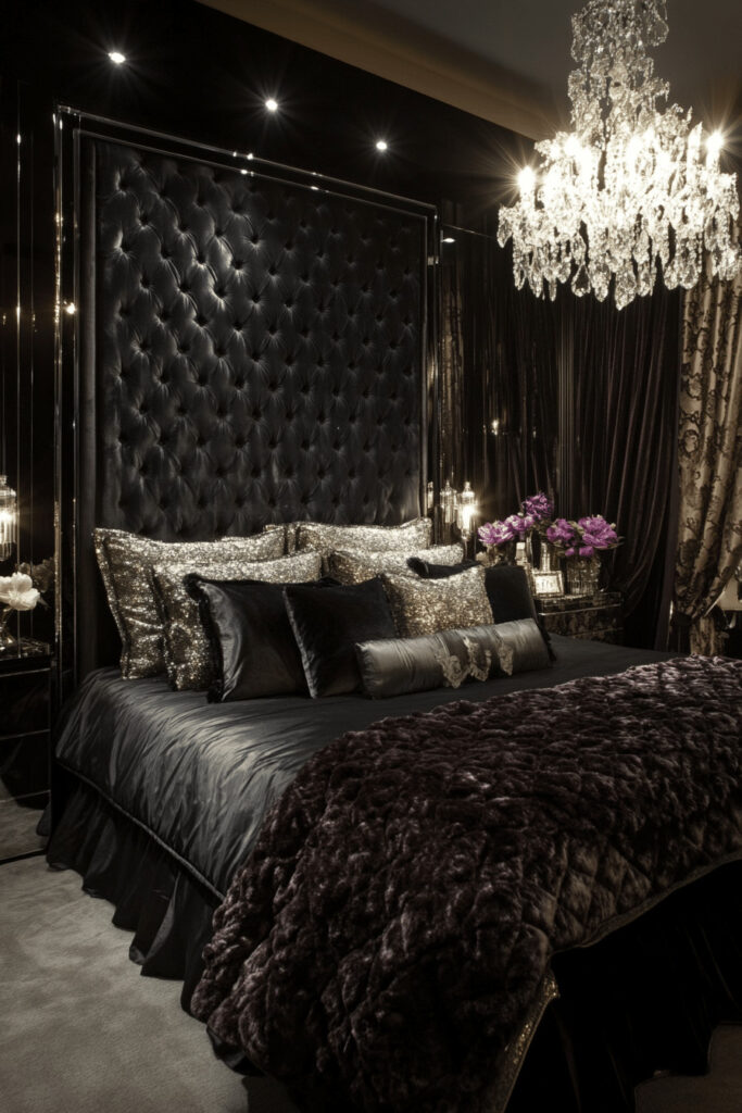 Embrace opulence and high drama with a Hollywood Glam Bedroom. This style captures the extravagant spirit of Old Hollywood’s golden age, featuring luxurious fabrics like satin and faux fur, glittering crystal and metallic accents, and a bold approach to decor. Think tufted headboards, mirrored furniture, and dramatic lighting. It’s perfect for the woman who dreams of a bedroom that feels like a star-worthy retreat, a space that is as glamorous and dazzling as a classic movie set.