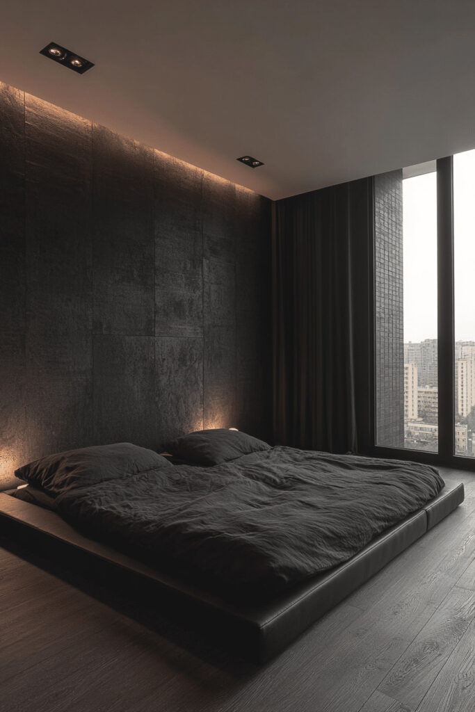 From the moody elegance of charcoal to the bold confidence of pure black, these minimalist ideas showcase the power of understated dark design to create a tranquil sleeping space that is both visually striking and deeply restful.