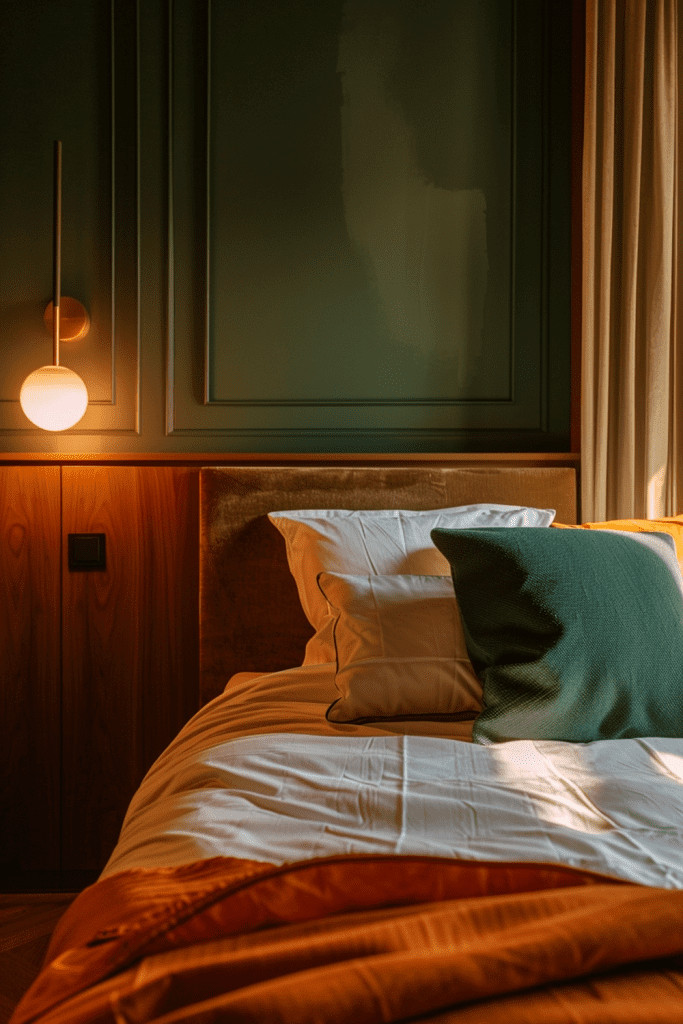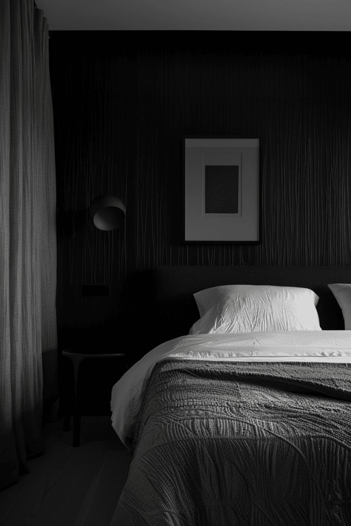 The foundation of any moody bedroom is a bold, dark color palette. Don’t be afraid of deep blues, rich emerald greens, charcoal grays, or even a soft, matte black. These colors, when used on the walls, create a profound sense of depth and an intimate, cocoon-like feeling. They absorb light, which makes the space feel cozy and serene, creating a sense of nighttime even during the day, perfect for a restful retreat.