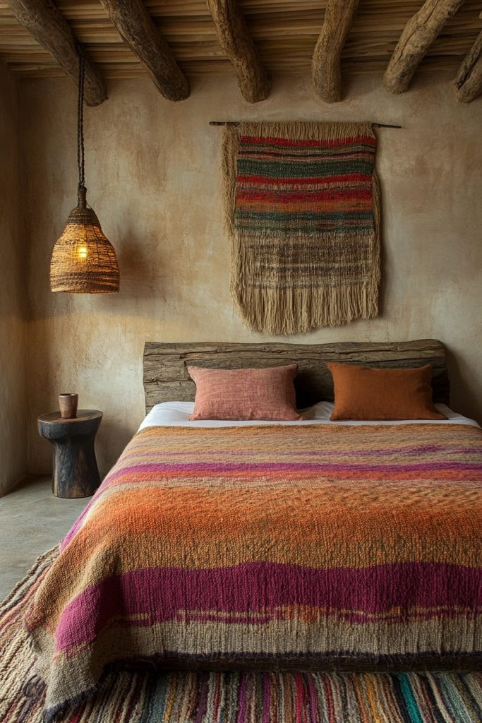 A Rustic Artisan Space celebrates unique, handmade items that add character and authenticity to the bedroom. Custom-crafted furniture, hand-sewn fabrics, and one-of-a-kind artworks give the room a gallery-like feel. Each element is carefully chosen to reflect the artisan’s skill and the natural materials used, creating a cohesive, curated look. This rustic bedroom is a testament to creativity and craftsmanship.