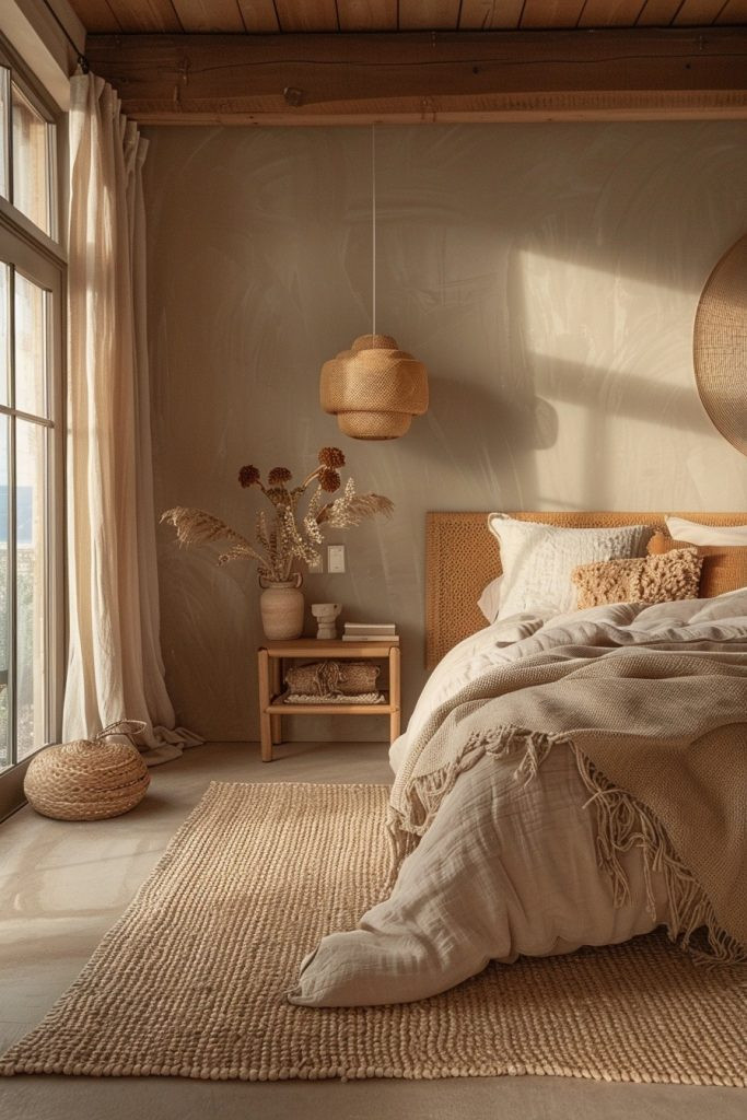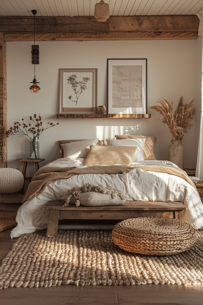 This style focuses on the beautiful juxtaposition of sharp, clean architectural lines with rich, comforting textiles. This contrast creates a space that is both visually striking and invitingly warm. The furniture is sleek and modern, with a clear, functional purpose. This is then softened and made cozy with an abundance of plush rugs, soft layered bedding, and perhaps a macramé wall hanging. This style is perfect for those who value both modern aesthetics and deep, tactile comfort.