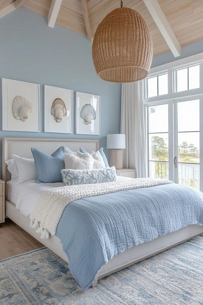 Coastal elements like light blues, sandy tones, and nautical decor are woven into this small cabin interior bedroom, creating a contemporary coastal theme. The light color palette and use of natural light make the space feel airy and beach-like, while modern furnishings ensure comfort and style. This bedroom is perfect for those who want a cabin experience with a fresh, coastal twist.