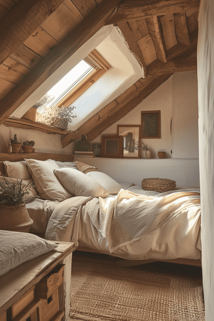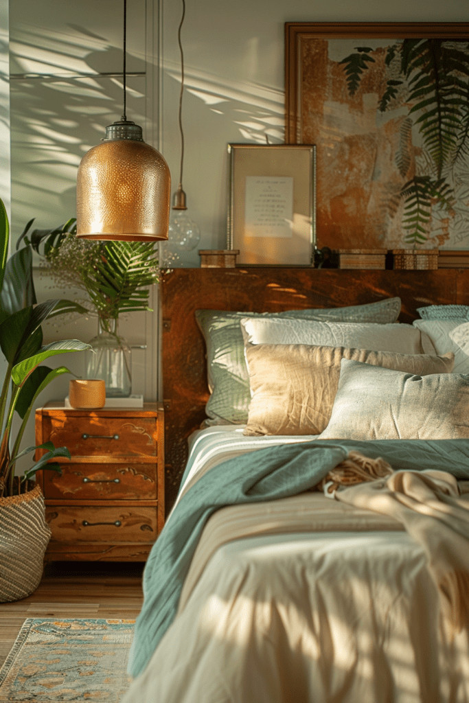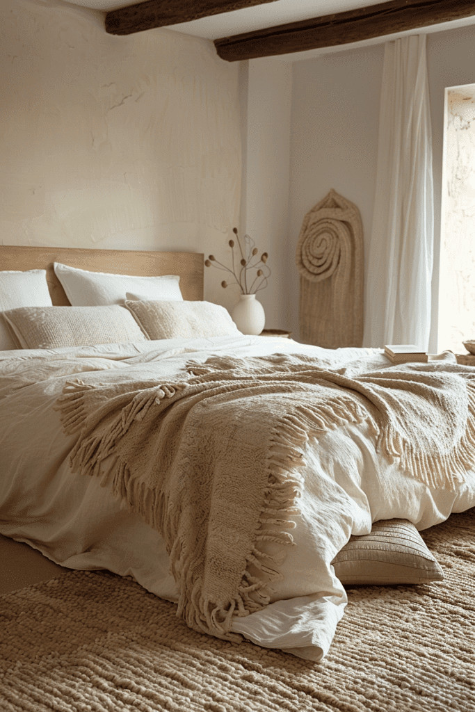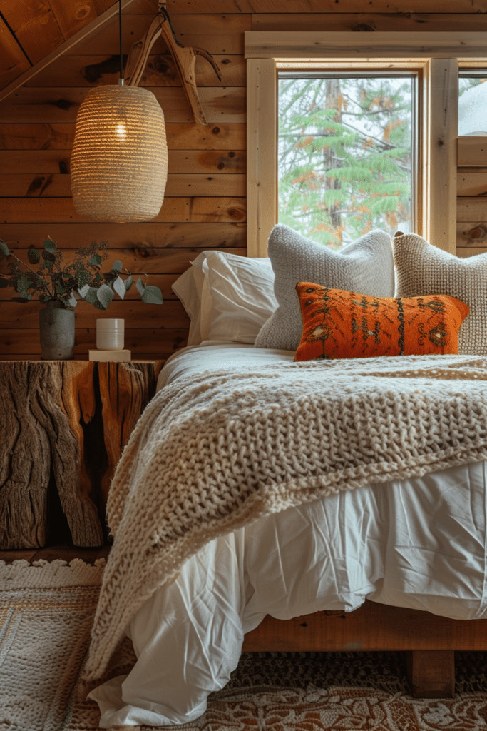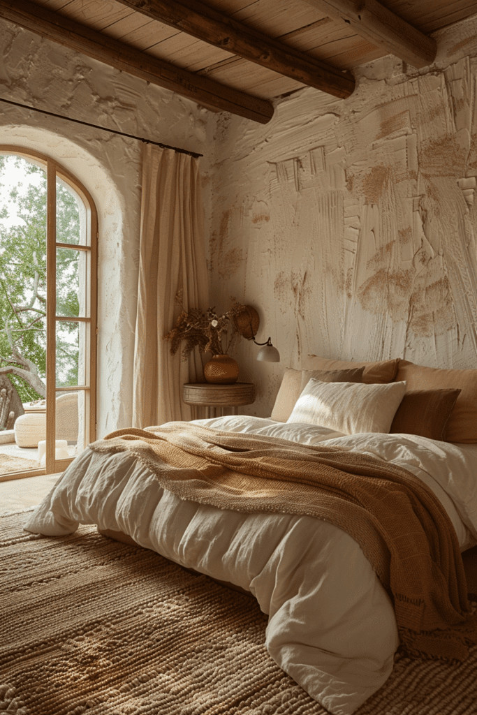 Create a bedroom that feels like a cozy, protective nest woven from the elements of the natural world. This is a true embodiment of Wabi Sabi, bringing the outside in with a wealth of natural materials. Use a real tree branch as a curtain rod, collect fallen leaves or seed pods for a decorative bowl, and choose textiles in the colors of bark, moss, and stone. This is a bedroom that resonates deeply with the gentle, cyclical rhythms of the natural world, creating a safe and nurturing haven.