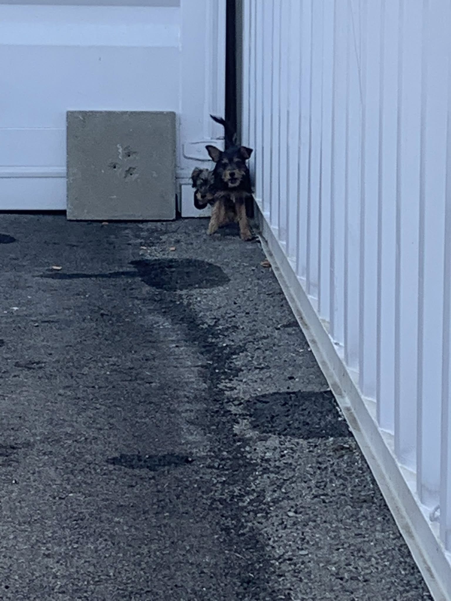 “Two small, frightened puppies—left way back by the containers and the wash,” Hall shared on Facebook.