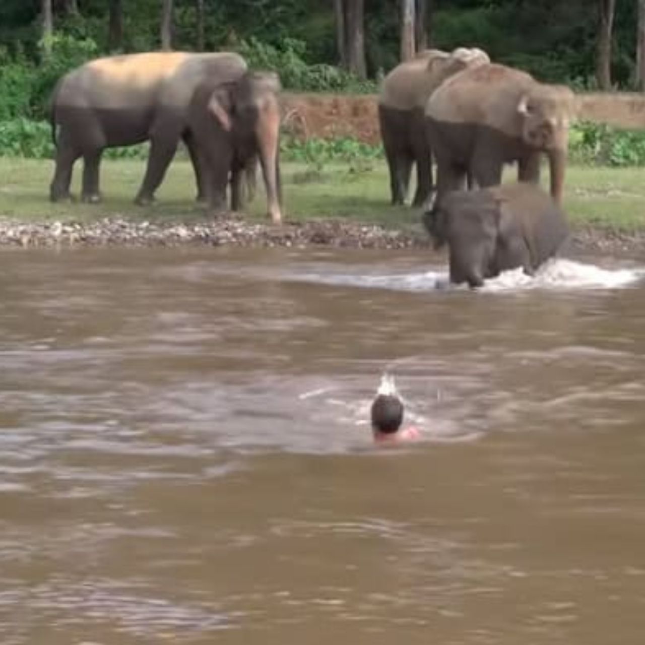 Elephants Unite to Rescue Calf from Watering Hole