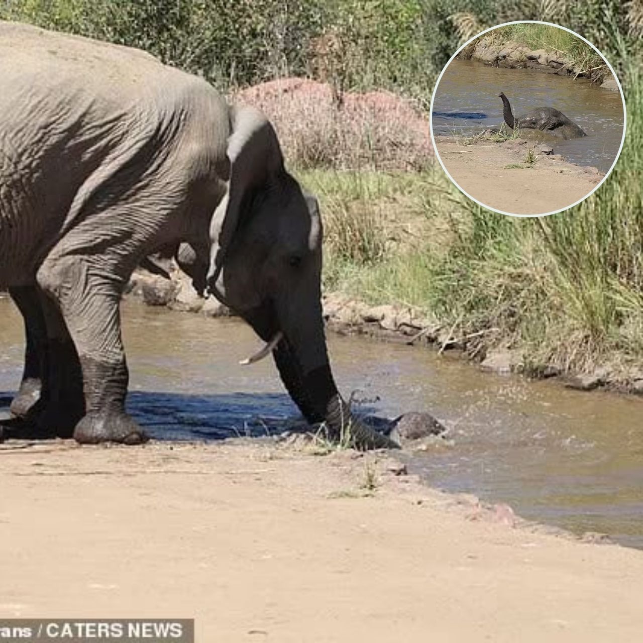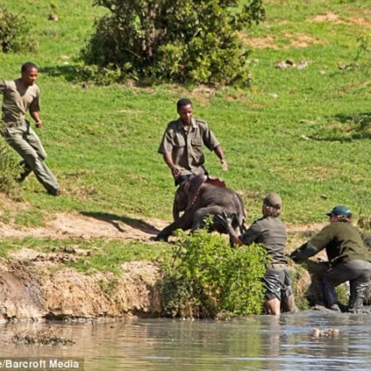 Brave Elephant Mom Saves Calf from Drowning