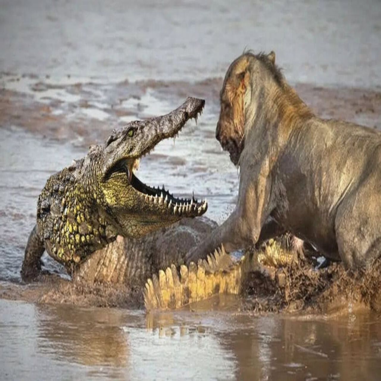 “Three Lions Team Up to Confront a Crocodile: A Remarkable Display of Unity”