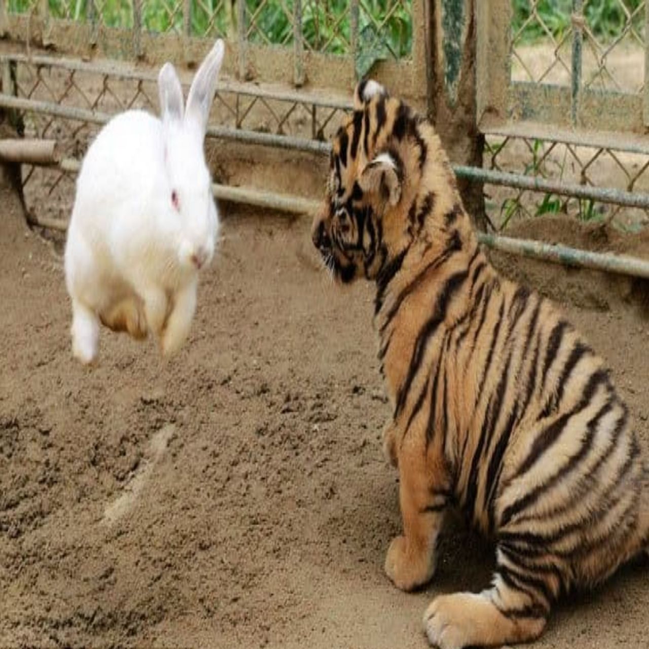 Clever Rabbit Outsmarts Tiger Cubs in Fun Zoo Chase