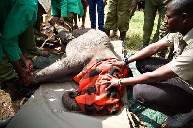 The SWT/KWS Mara Vet Unit successfully separated the calf from her guardian bull and airlifted her to Nairobi from Keekorok Airstrip.