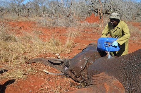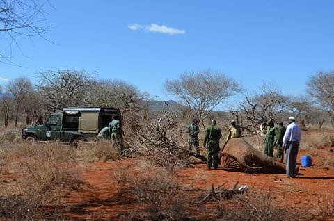 The DSWT-funded Tsavo Mobile Veterinary Unit, led by Dr. Poghon, promptly sprang into action.