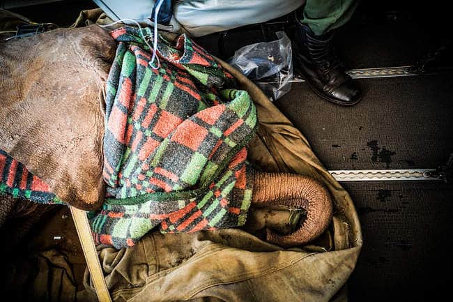 After a brief stay at Ithumba, Mukkoka was transported to the DSWT Nairobi Nursery, with a drip providing IV fluids during the flight to ensure his well-being.