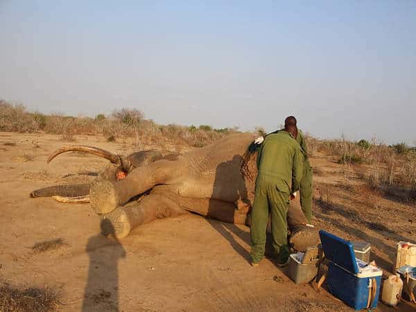 The injured bull was pinpointed using the helicopter, and a precise dart containing 18 mg of Etorphine Hcl was administered to his rump.