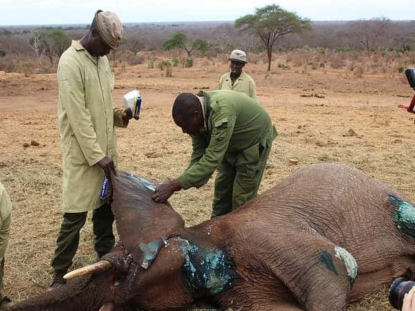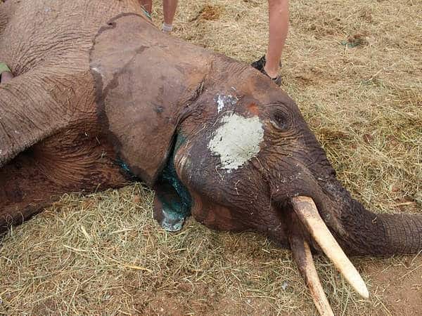 Approaching the elephant cautiously, the dedicated team discreetly administered 10 milligrams of Etorphine using a 1.5 cc dart barrel. Within five minutes, the gentle giant gracefully descended to the ground.