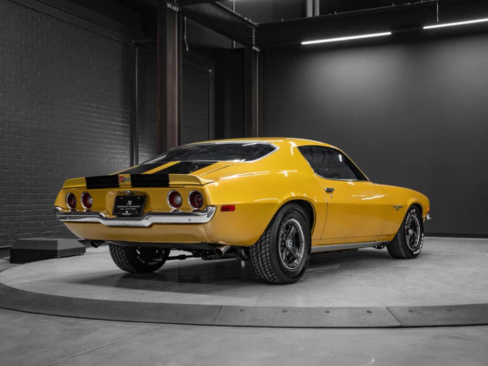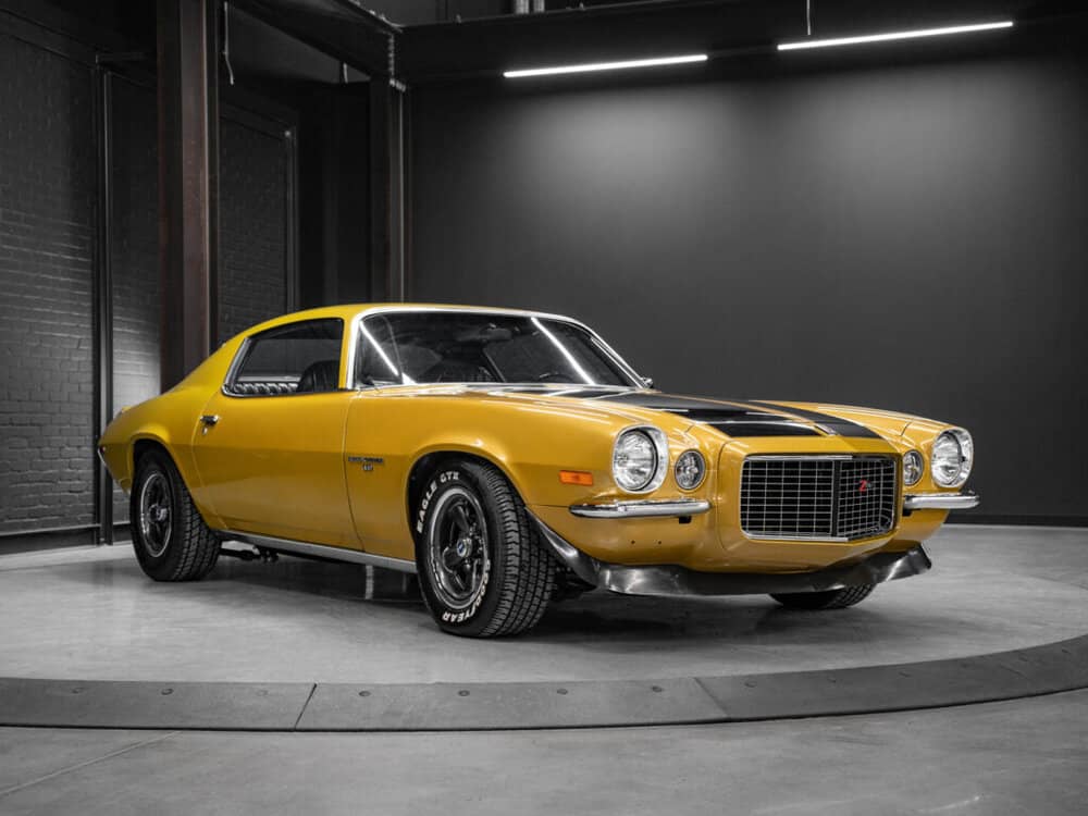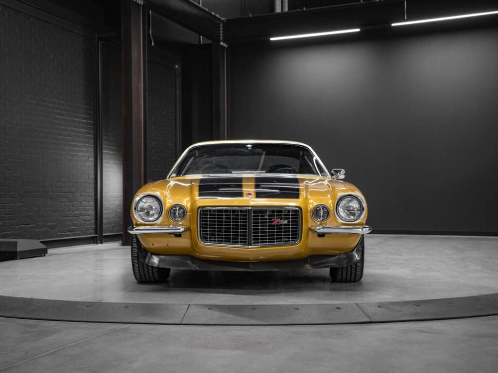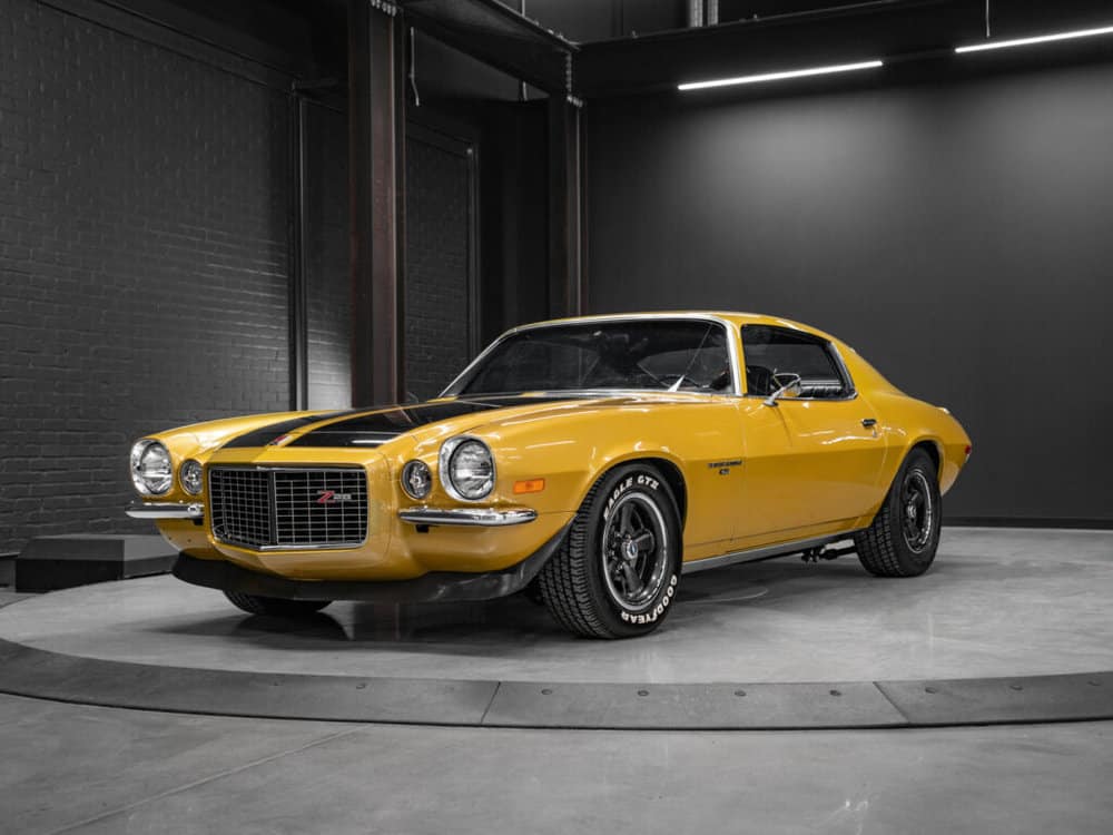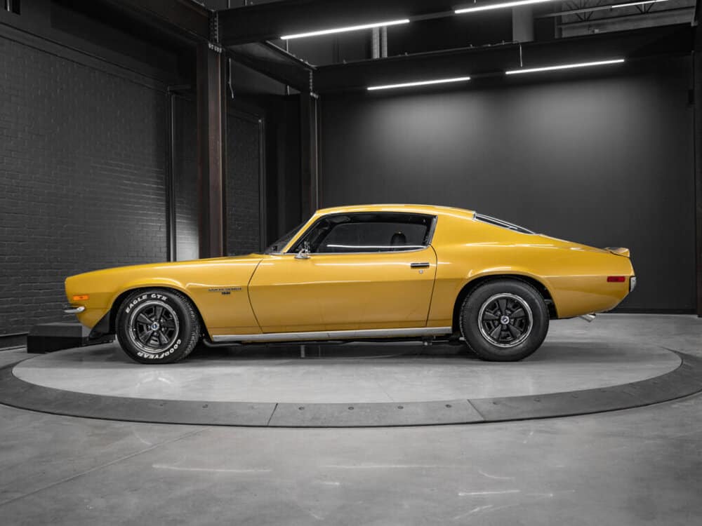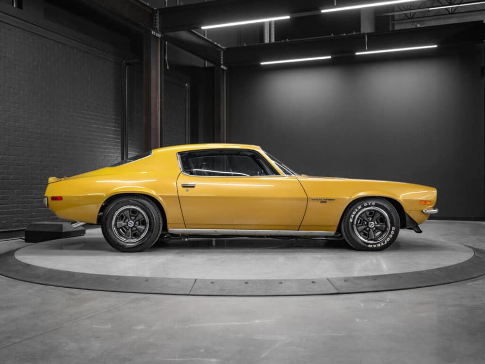 At first glance, the 1971 Chevrolet Camaro RS Coupe RWD commands attention with its splendid Gold exterior.