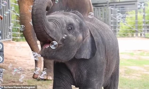 The delightful footage shows Brazos joyfully interacting with bubbles for the first time. With wide-open eyes, he playfully waves his trunk and even attempts to catch the bubbles as they drift toward him.