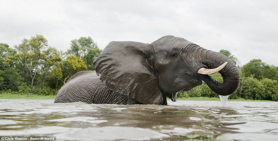 In a daring adventure, fearless British wildlife photographer Chris Weston plunged into the wild, wading into a river delta in Zimbabwe alongside a majestic herd of elephants.